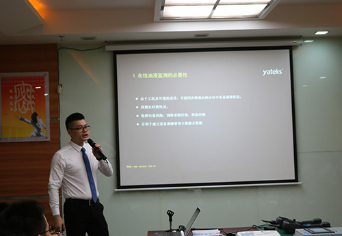 接下來,油液事業部負責人鄒總對新品在線油液監測系統進行了精彩詳盡的講解。整個培訓過程既包括產品原理介紹、操作流程示范、成功案例展示等專業技術領域,同時又有產品優勢分析、應用領域講解、市場容量分析等營銷知識。