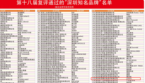 2021年1月21日,第十八屆“深圳知名品牌”評(píng)選結(jié)果揭曉,深圳市亞泰光電技術(shù)有限公司再次復(fù)評(píng)榮獲第十八屆“深圳知名品牌”殊榮。