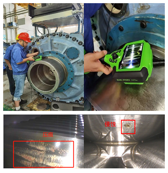 案例3?:國內某知名生產高、低速重載齒輪箱為主的企業使用亞泰ZIE620內窺鏡對風電齒輪箱出廠前星輪、太陽輪等的檢查,保證出廠質量100%合格交付到工程單位。