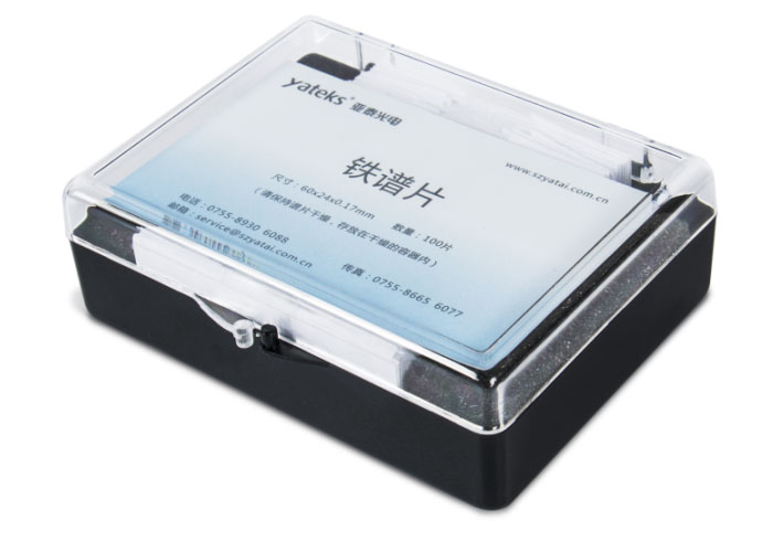 1、 采用高精度點膠機,有效保證U型槽的深度,最大限度避免鐵磁性顆粒隨油樣的流動流失; 2、 專用收納盒,保證譜片干燥,每盒100片。