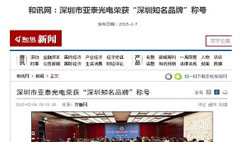 2015年1月8日,首屆““國際信譽品牌”“暨第十二屆“深圳知名品牌”評選評審會議在深召開,專業從事設備故障診斷和狀態監測技術的國家高新技術企業—深圳市亞泰光電技術有限公司所持有的“yateks”品牌商標被正式評定為“深圳知名品牌”。